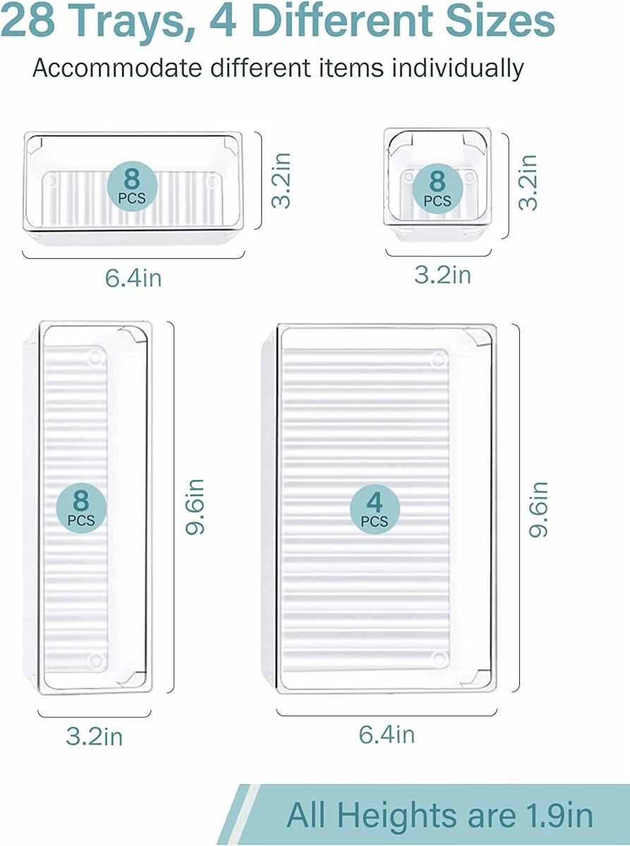 28 Pack Draw Organiser Boxes Drawer Fridge Trays Makeup Storage Plastic Dividers Ebay